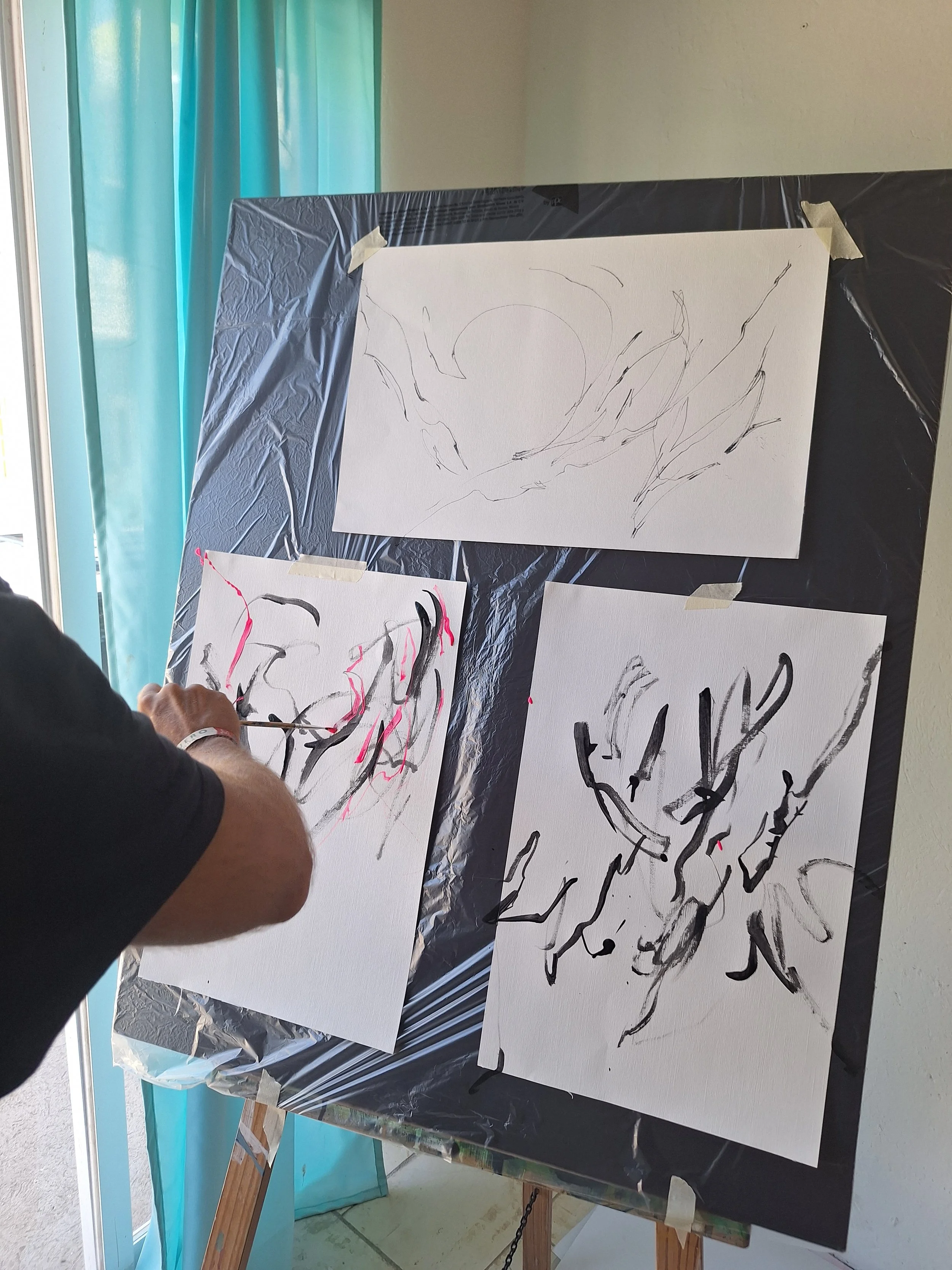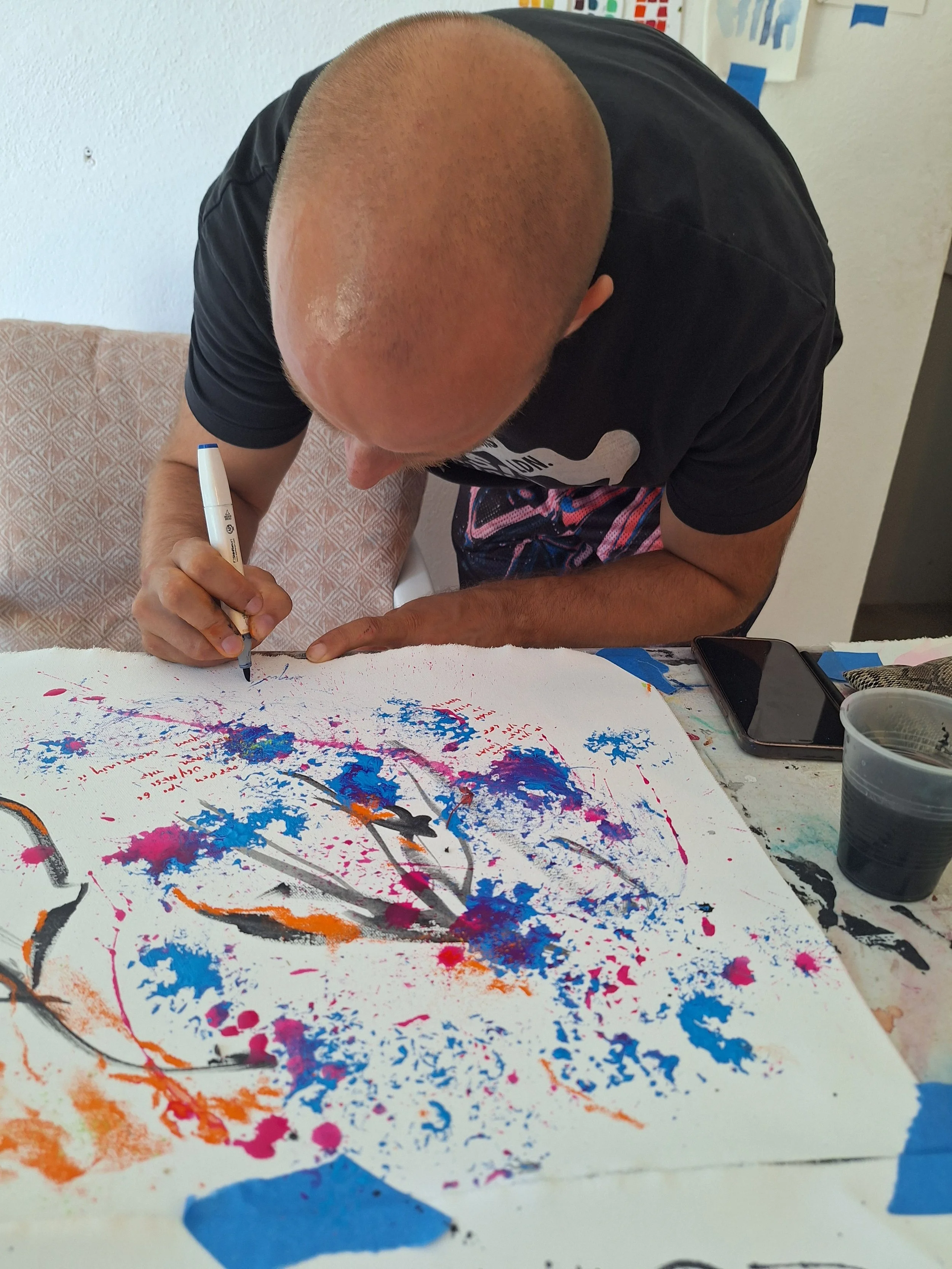 “I wanted to say a big THANK YOU. It’s been an amazing week with you and it’s so nice to get to know you. Magically how it was so smooth for me to open up and be myself and not hesitate to work with you freely. But also how you understood me and intuitively always knew what to do: “don’t think Alex, change medium here, switch the technique, you seem to comfortable let’s switch etc” it was very impressive and I can feel that I have learned a lot but also already have shifted mindset on how to start or how to create. There is a way bigger focus on the process and the learning in the process. Instead of thinking of an end result always. Big big thank you.”