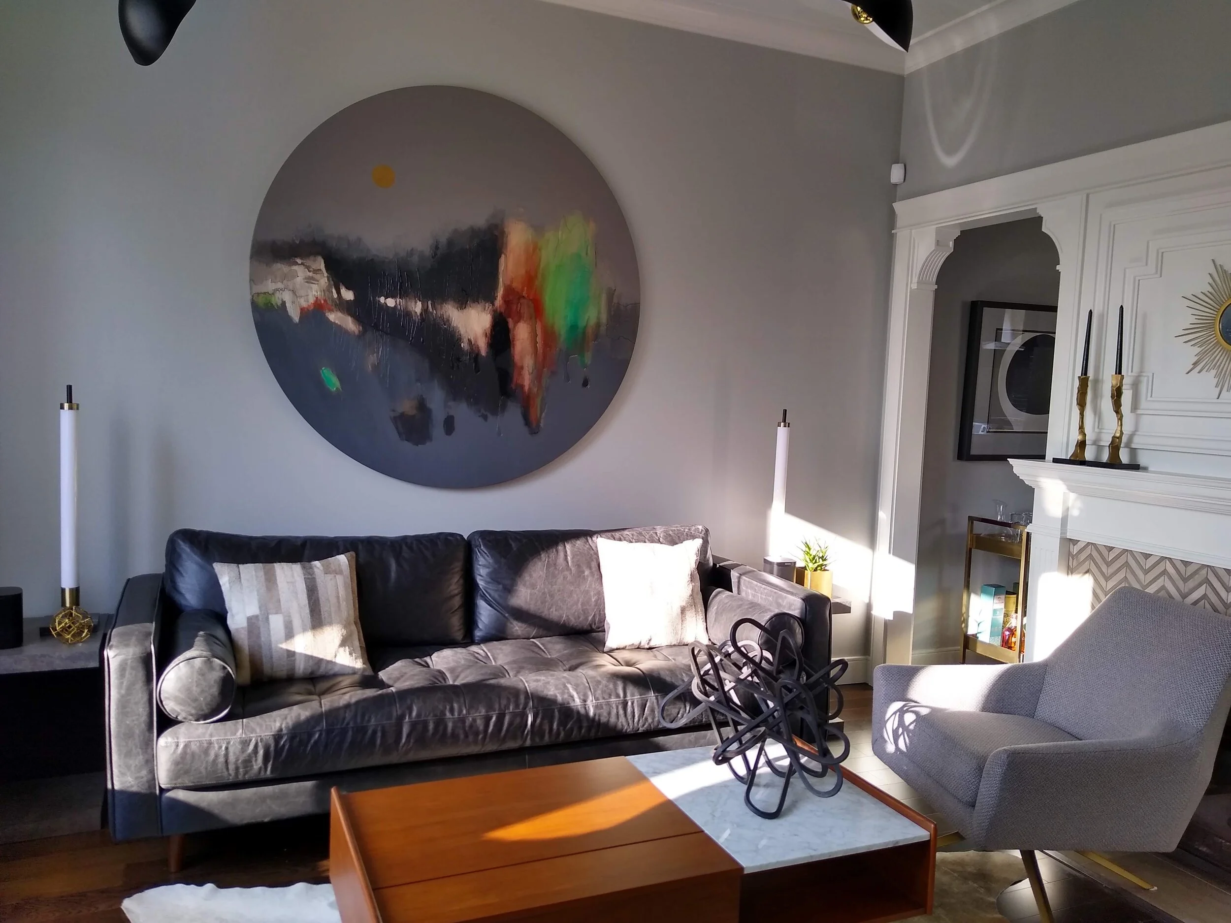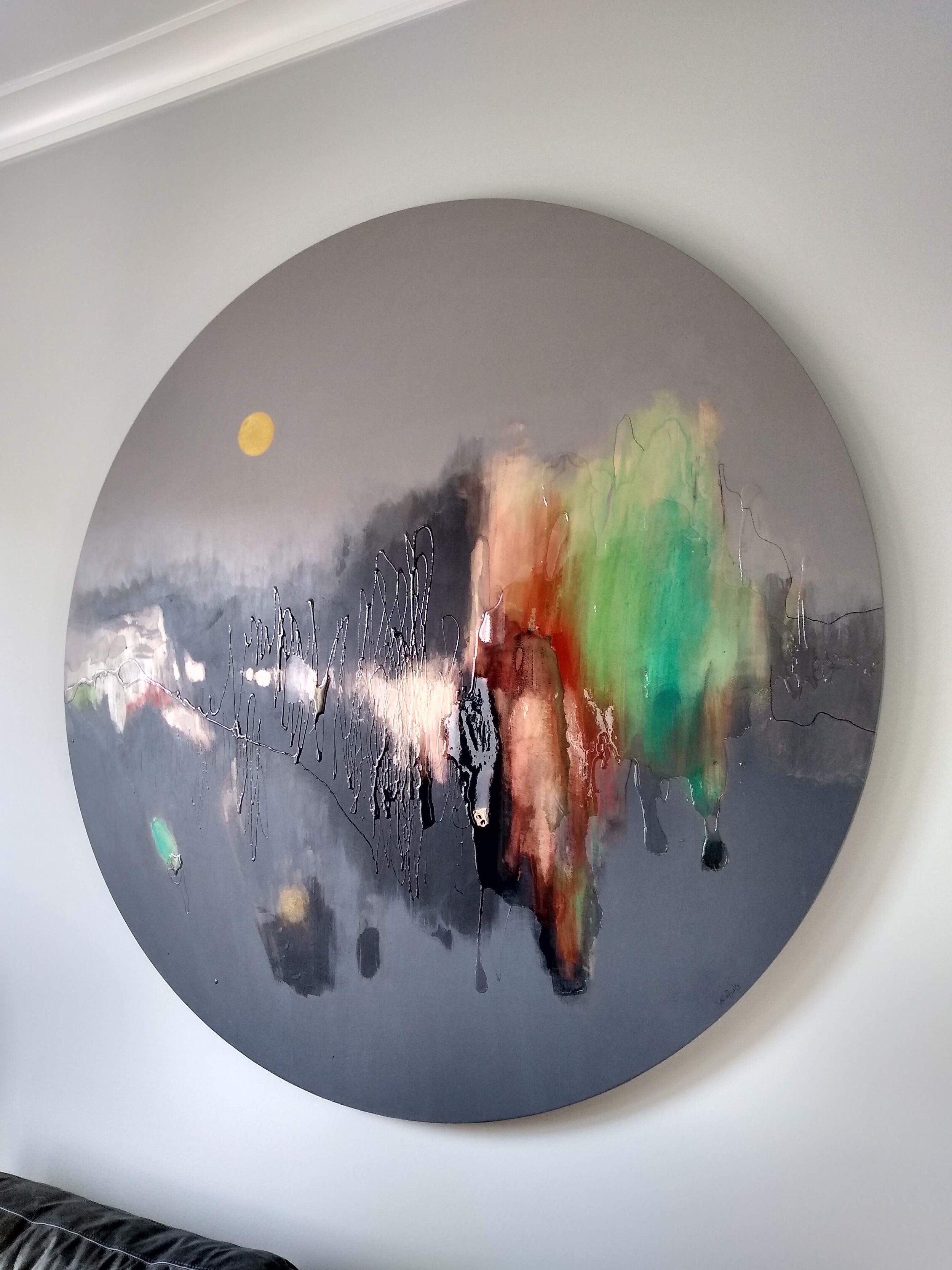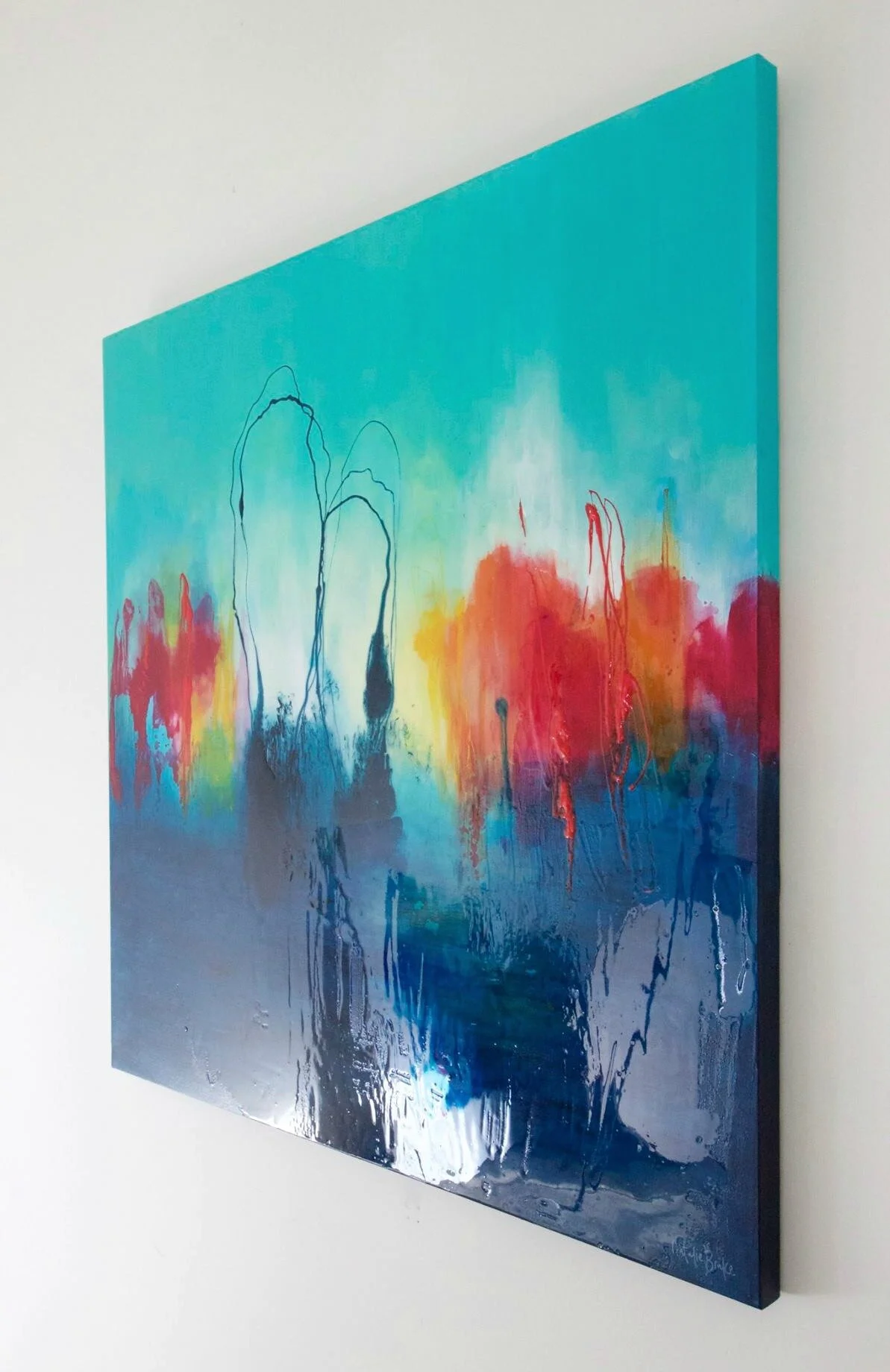 - The collectors had purchased a smaller piece of mine and wanted something larger for a feature wall in their home. I spoke with them about their colour/ design scheme and style and they left the painting up to me from there.