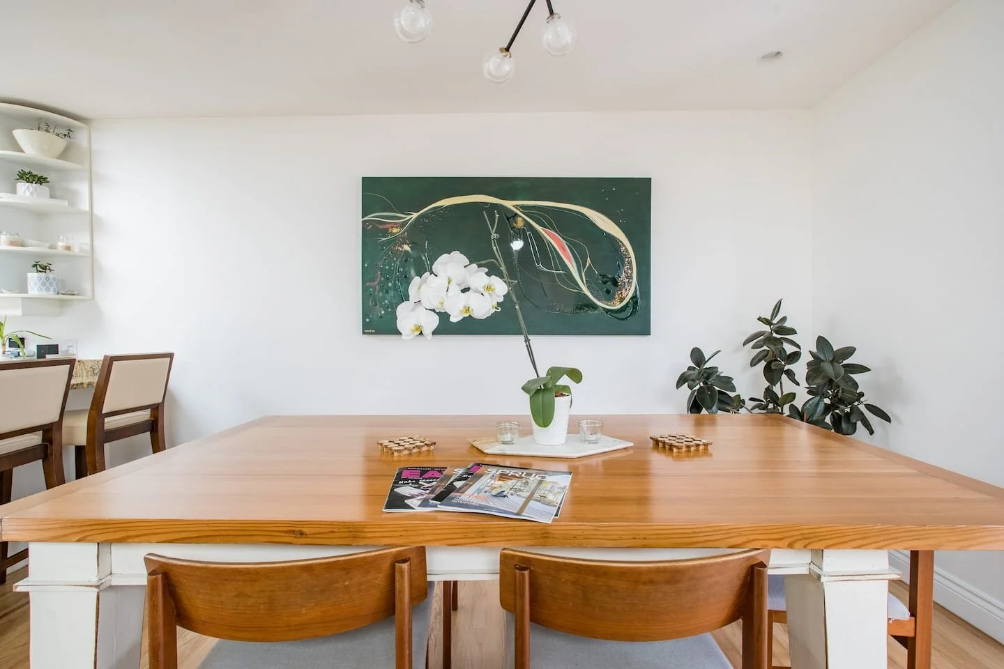 A commissioned piece for this gorgeous Airbnb in Youbo, British Columbia. This home is perched upon the lake and the artwork is in the main living room, where it is meant to capture the essence of the outdoor setting, the nearby water, and to provide guests at the home a sense of awe and beauty.