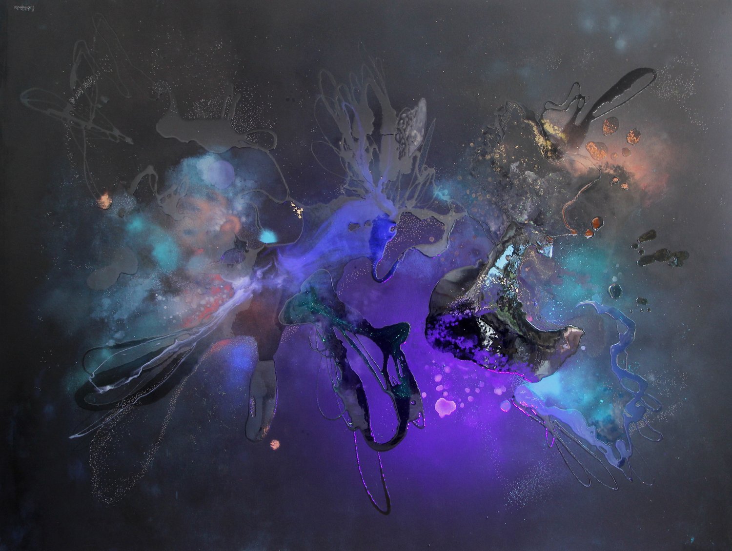 ”Space Punk” - 8 foot by 6 foot, acrylic and resin on canvas - Luminescent piece.