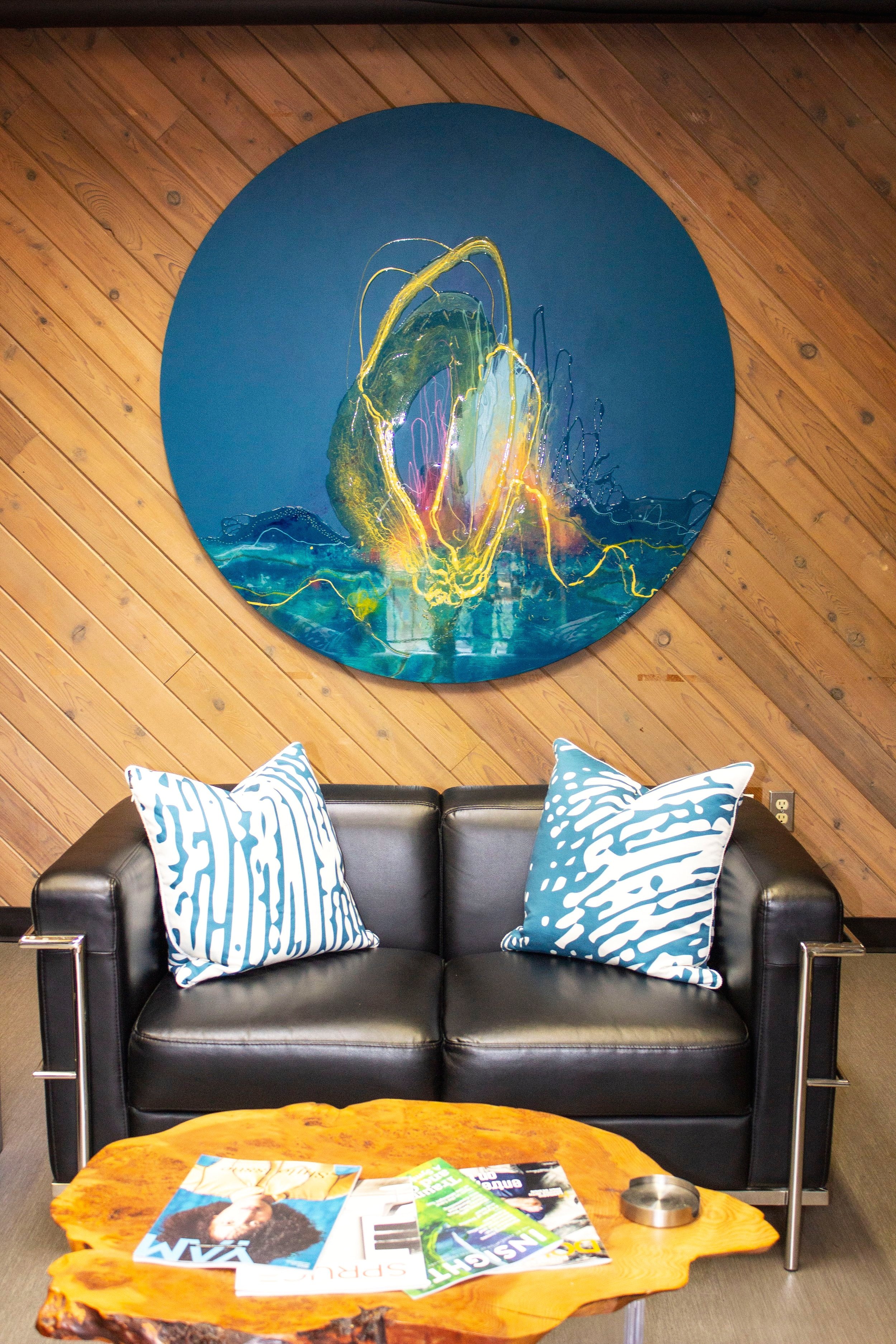 5ft x 5ft commission for Interior Designer Jean-Marie Shields (Seattle). Arcylic and Resin on Birch wood.
